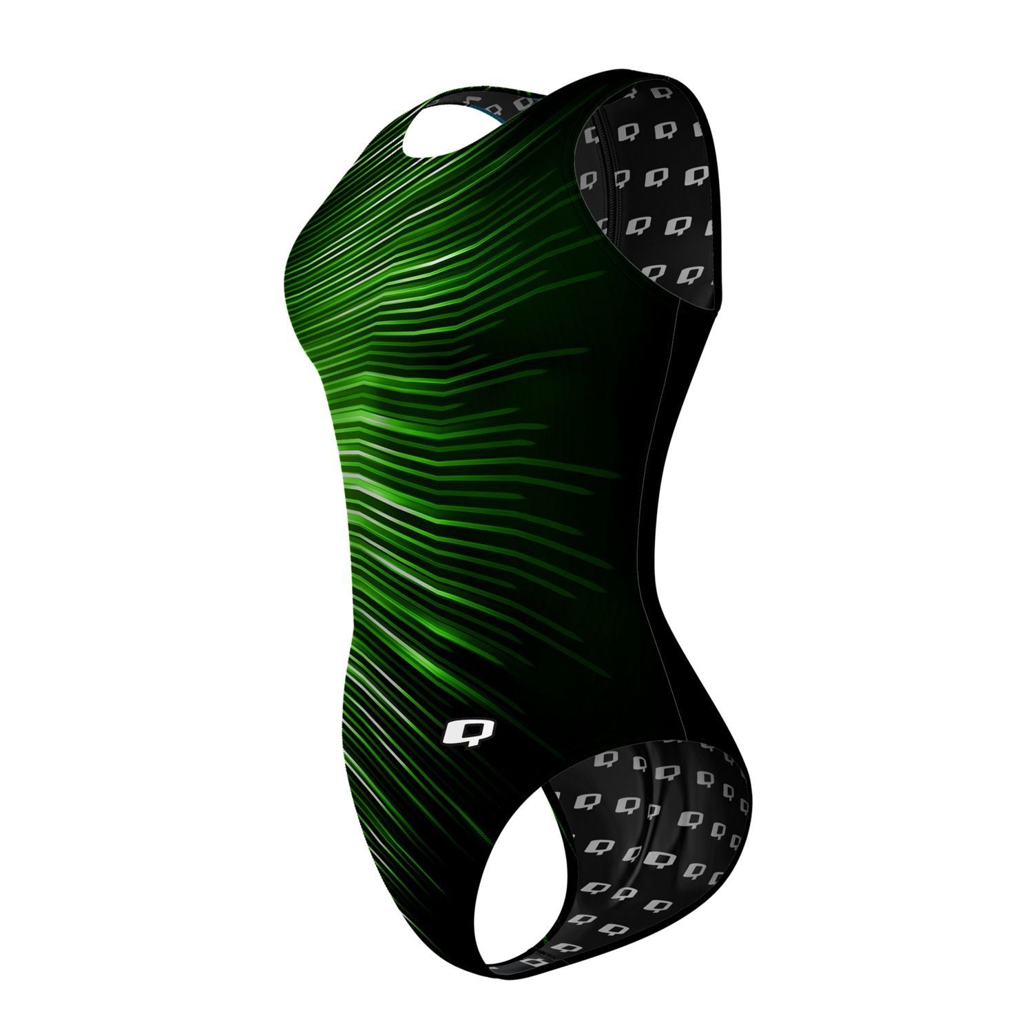 El traje Q Waterpolo ha sido especialmente diseñado para ser difícil de agarrar, con su espalda estilizada y ultra conservadora, correas anchas para una gran cobertura, cuello alto y ajuste ceñido para una ventaja competitiva.
